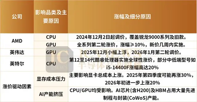 近期半导体市场的涨价信号,已从传闻落地为实际动作,且覆盖了 CPU、GPU 两大核心硬件。
