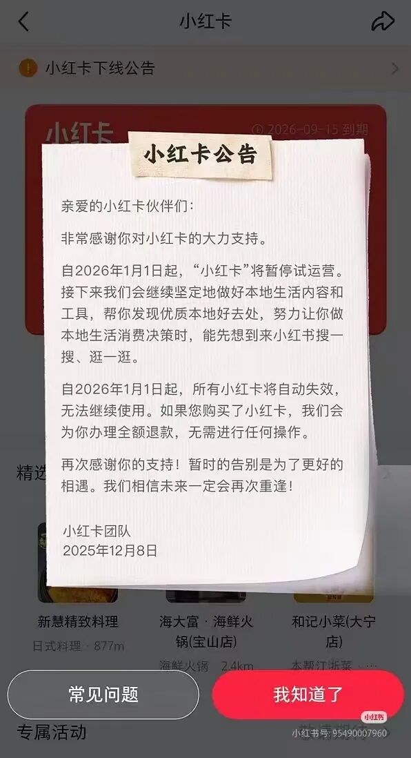 而在小红卡暂停运营的公告里,也很明确说,本地生活业务依然继续,「接下来我们会继续坚定地做好本地生活内容和工具」。
