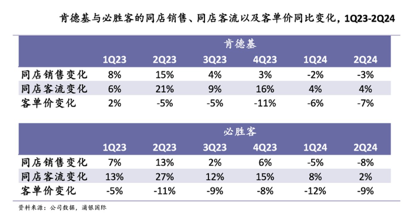快餐行业翘楚必胜客和肯德基,近期也在面临的客单价和同店销售的双双下行。用户越发捂紧钱包,餐饮行业就越难有溢价能力,全行业从业者已经或主动或被动卷入价格战的漩涡。