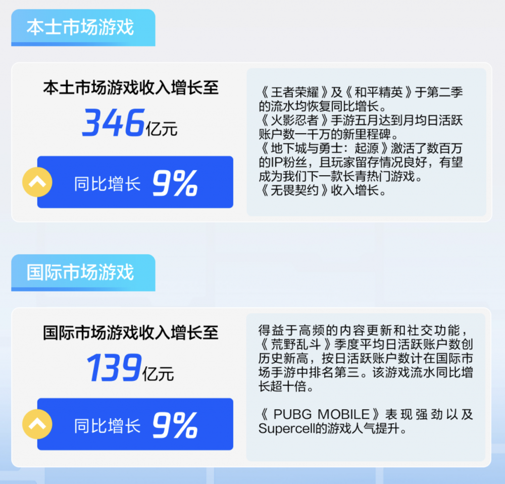 而根据腾讯今年第二季度财报,本土游戏收入达到 346 亿元,国际市场也有 139 亿元之多。相比较之下,微信小游戏就是九牛一毛。