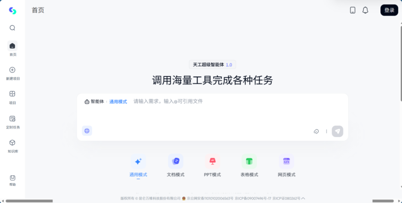 在阿里之前,昆仑万维发布天工超级智能体,打出 「AI 版 Office」 的旗号,其内置的专家智能体可以一键生成专业的文档、PPT 和表格。
