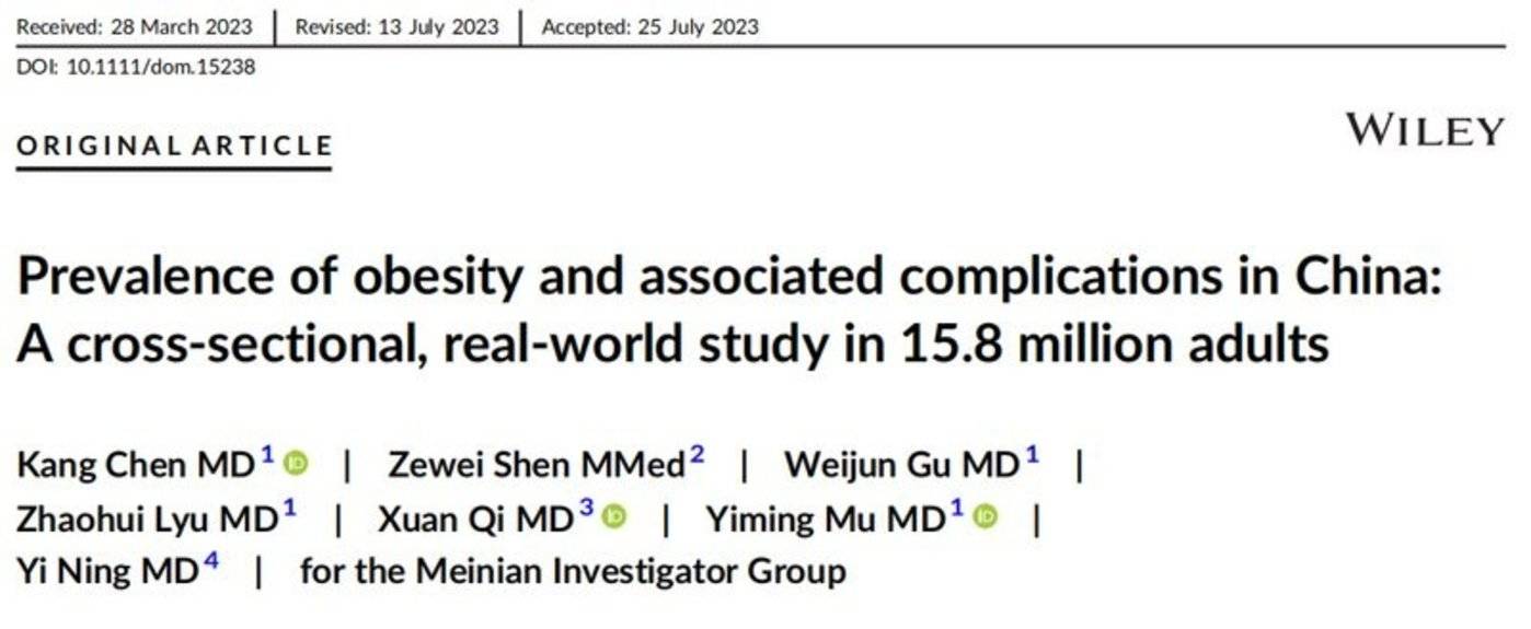 去年 8 月,中国人民解放军总医院第一医学中心内分泌科主任医师母义明及其团队,在学术期刊 《糖尿病、肥胖与代谢》 上发表了 《中国肥胖患病率及相关并发症:1580 万成年人的横断面真实世界研究》 论文。数据显示,基于 BMI 统计,国内超重人群占比达到 34.8%,14.1% 的人有更严重的肥胖问题。