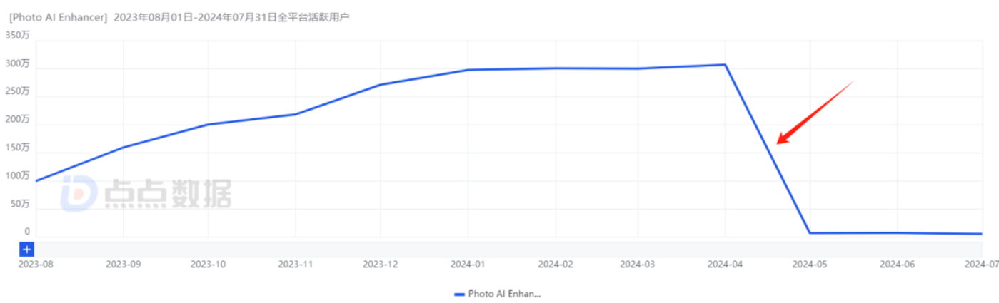 数据来源:点点数据 (注:2024 年 4-5 月 Photo AI 的 MAU 出现了一次大跳水,不知发生了什么情况)