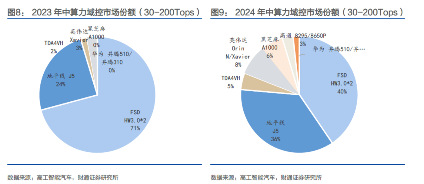早期,特斯拉自研 FSD 主导市场 (HW3.0),但现在特斯拉升级至 HW4.0 (进入高算力市场)。