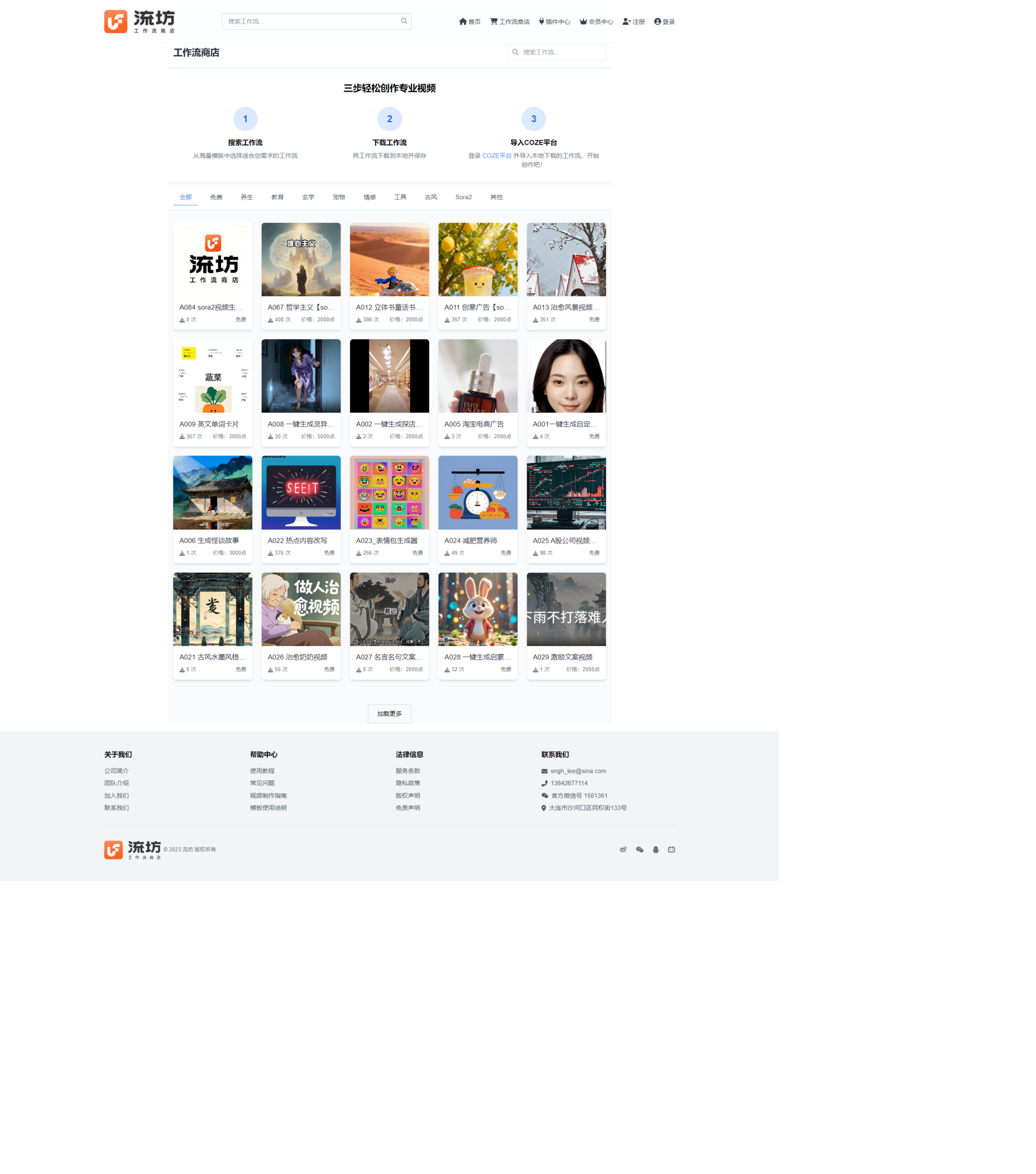 它最实在的是不搞虚的,上来就给 200+ 个免费 Coze 工作流还有免费额度,点一下就能下载导入。我特意看了分类,尤其是针对 养生、教育、书单、历史 这些细分短视频赛道,直接给了现成的免费工作流,不用自己琢磨脚本逻辑、镜头衔接,一键就能生成完整短视频,对刚做短视频的人太友好了。