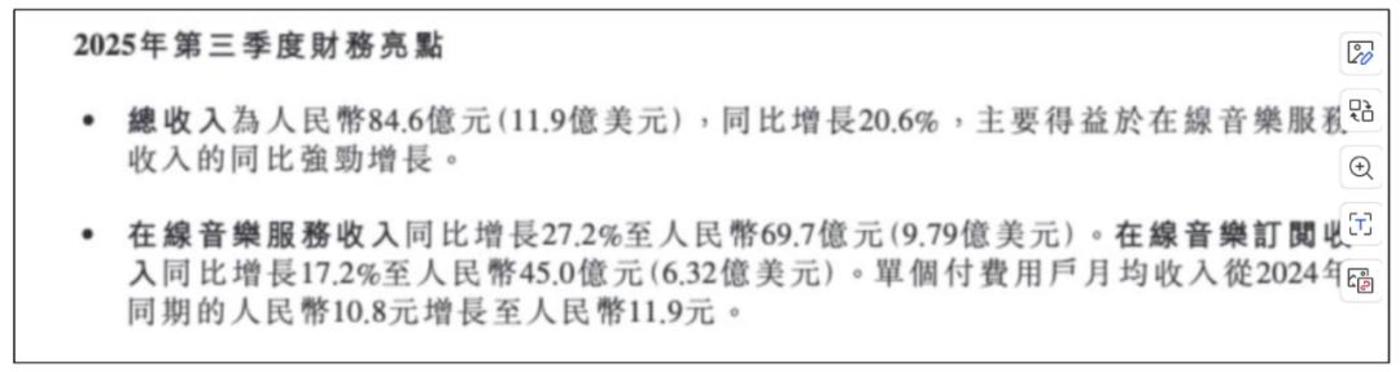图/腾讯音乐 2025Q3 财报截图