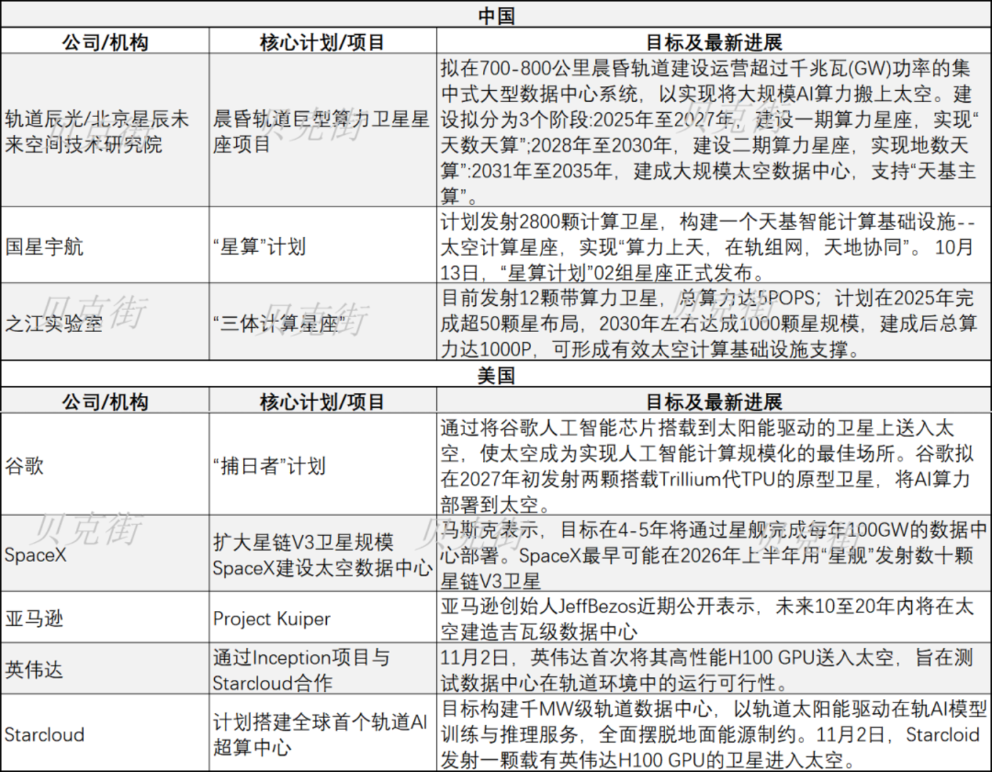 除导航通讯类星座计划外,伴随近年来人工智能行业飞速发展,算力需求呈几何倍数增长,多家公司计划将算力送进太空,包括但不限于国内公司/机构 「北京星辰未来空间技术研究院」「国星宇航」「之江实验室」;美国谷歌、Space X 等熟知的科技公司。