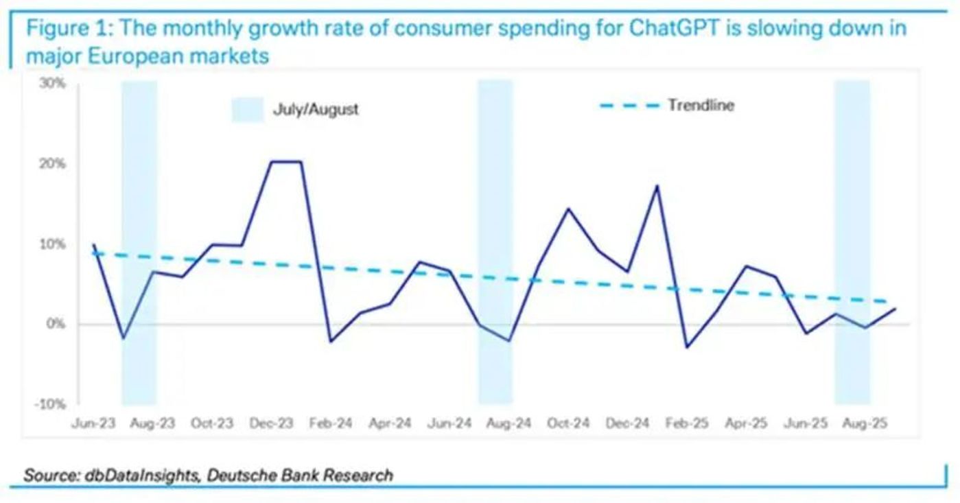 其核心产品ChatGPT Plus的订阅收入虽然可观,但已显现出明显的增长瓶颈。德意志银行于10月14日发布研报称,OpenAI在欧洲主要市场的订阅收入已连续四个月持平。而随着谷歌将性能更强的Gemini模型深度集成,ChatGPT Plus的 「付费价值」 被进一步稀释,更加剧了其用户增长和留存的压力。