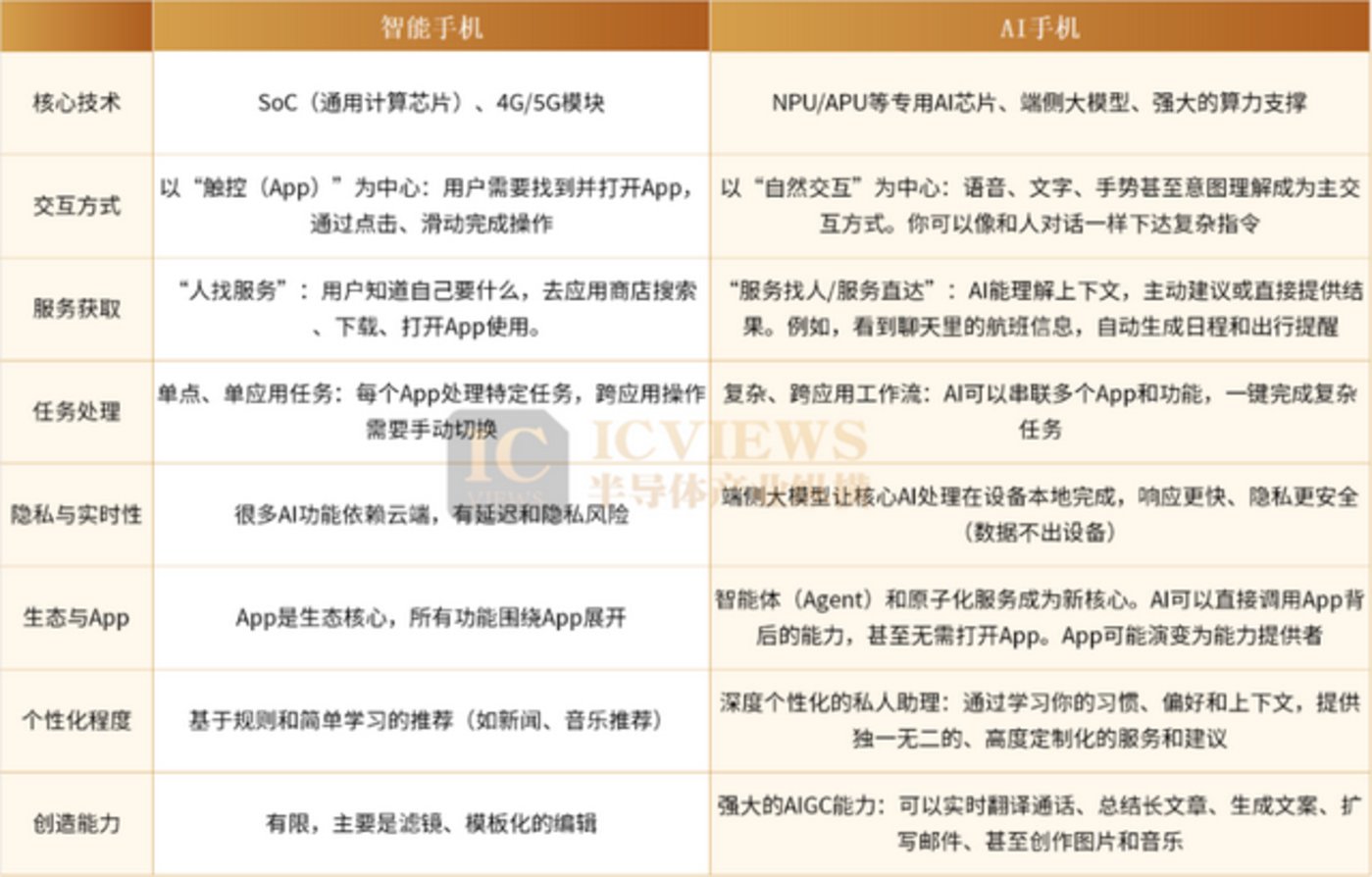 如今市场上 AI 手机的宣传层出不穷,但真正的 AI 手机与传统智能手机有着本质区别。AI 手机并非脱离智能手机范畴的全新产品,而是其下一代进化形态,核心差异在于 AI 从 「辅助工具」 升级为 「系统级的基础能力和交互核心」。不过,关于 AI 手机的准确定义,目前行业尚未形成统一标准。