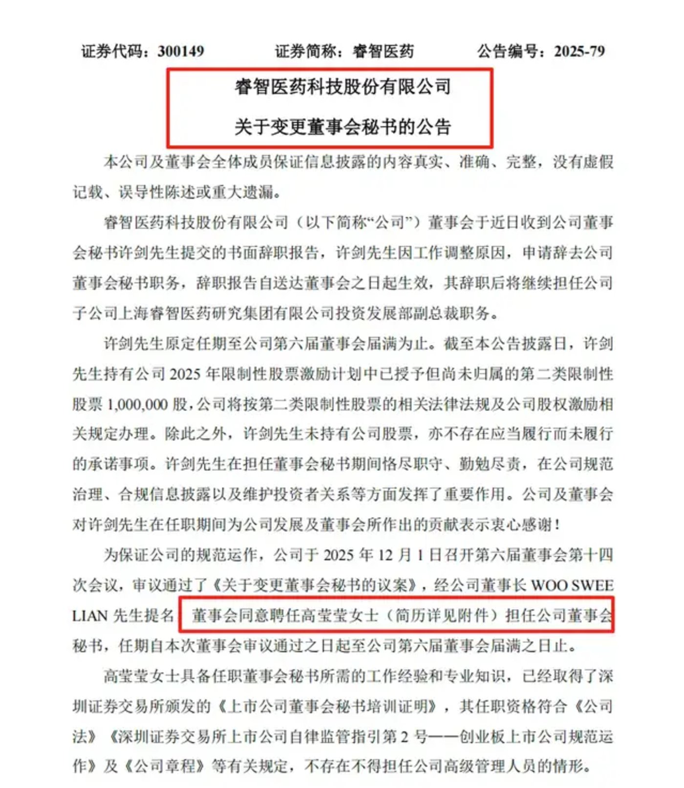 尽管公告强调其已取得董秘培训证明,具备任职资格,但缺乏医药行业积淀与资本市场实操经验的短板,仍让不少投资者提出质疑:「生物药研发生产是高度专业的领域,董秘岗位关乎信息披露准确性与资本运作效率,跨界新人能否胜任?」