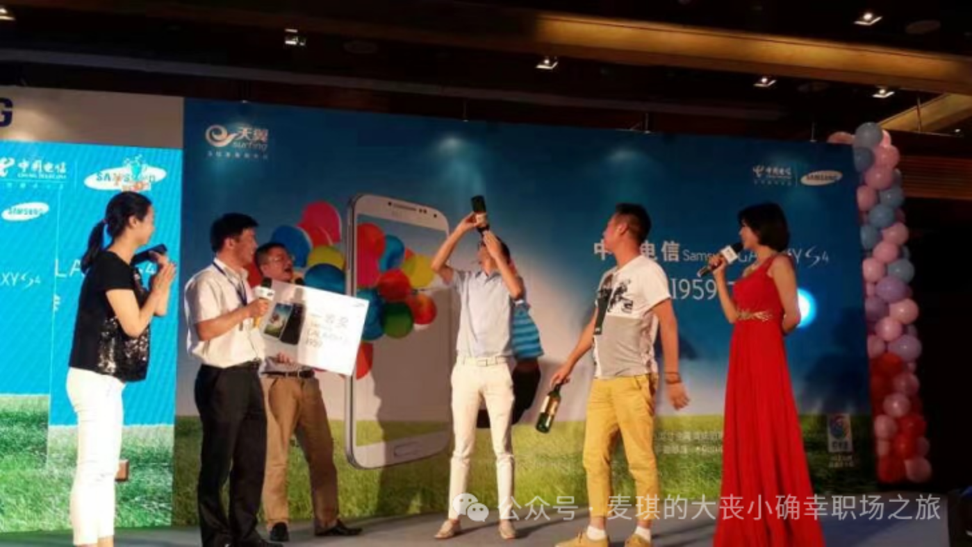 比如,新人先喊:「NOTE III 上市,我们华东支社的目标是日销一万台!」 接着,大家一起高喊:「必达,必达,必达!耶——」 喊完后,所有人一饮而尽杯中酒。这看起来似乎不难,难就难在所有人都要依次喊口号。轮到最后一个人时,很可能找不到合适的话题,或者不小心重复了前面喊过的,那就要接受罚酒,直到喊出一个完整无误的口号为止。 大团队聚餐,还会要求你上台面对全场喊口号,一旦紧张喊错或者喊得含糊不清,同样要罚酒。这是每次聚餐的必备节目,后来连渠道客户、合作伙伴们都学会了,于是此起彼伏的口号声、呐喊声响彻餐厅内外,震耳欲聋。