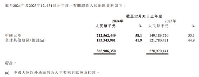 小米集团近六成收入来自中国大陆 来源 / 小米集团 2024 年财报