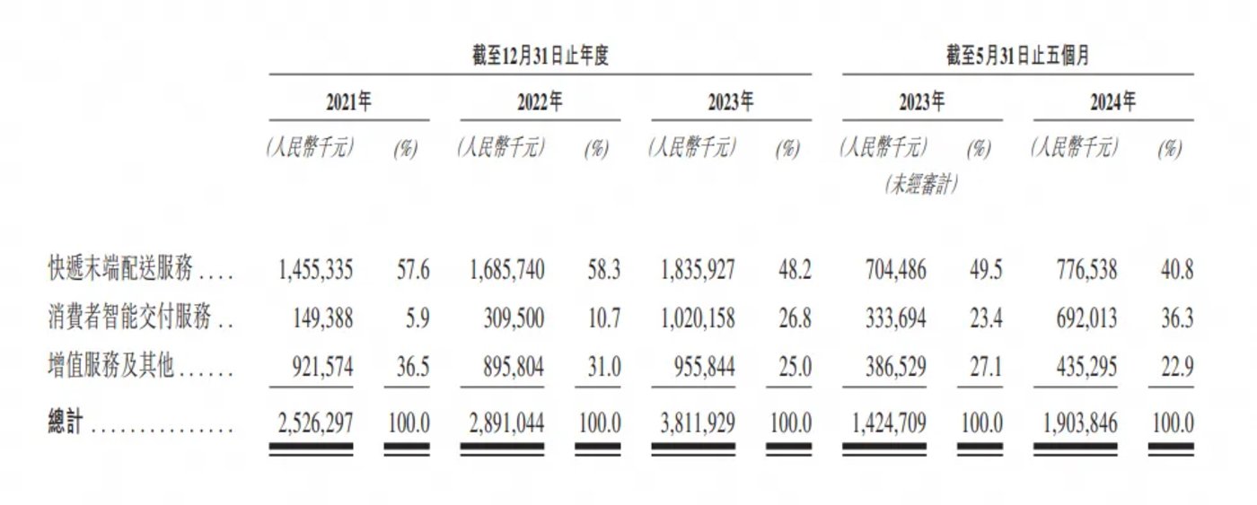 丰巢的 「消费者智能交付服务」——也就是寄件服务,在这样的市场环境下,受到电商高退货率的反向利好,收入从 2021 年 1.49 亿元增长至 2023 年 10.2 亿元,占总收入比例达到 26.8%。