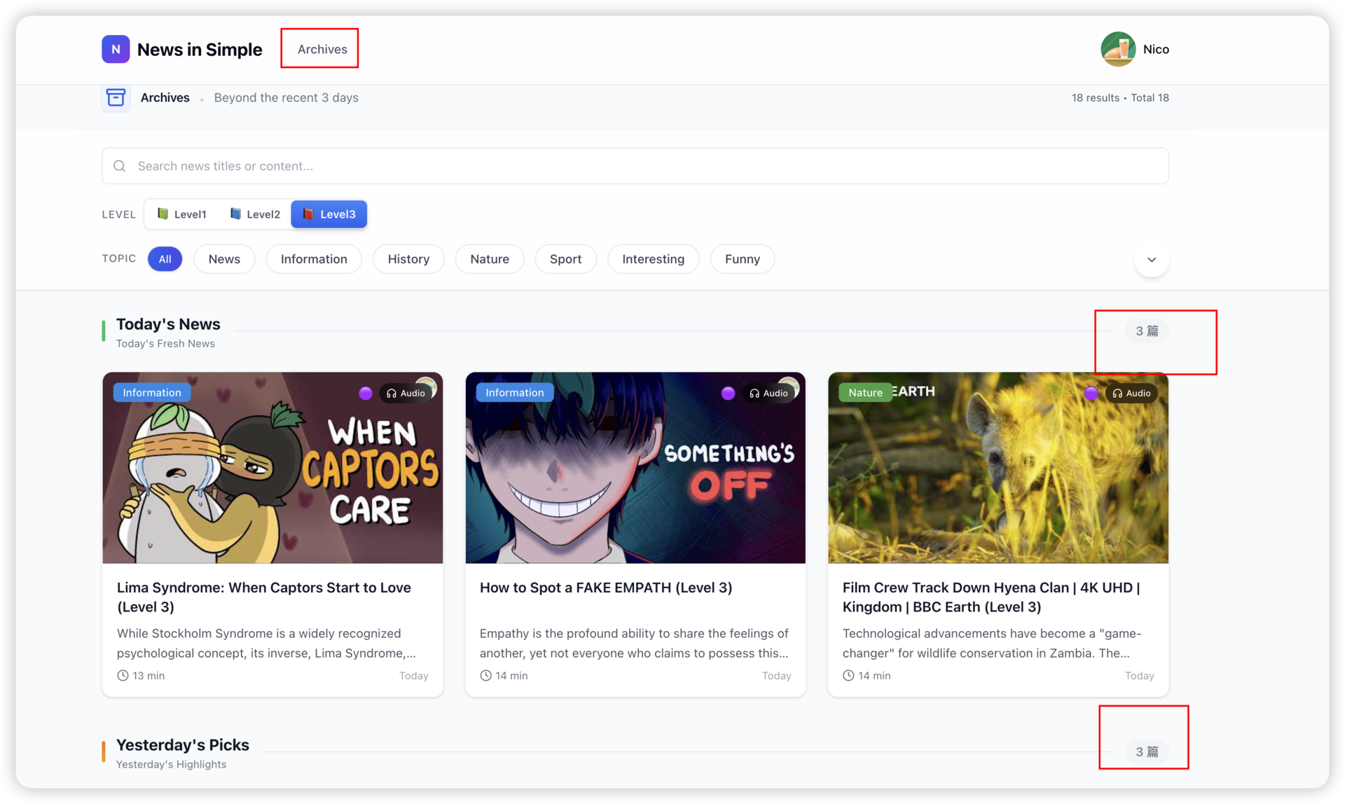 文字是平面的,视频才是立体的。News In Simple 的核心特色在于 YouTube Video 的深度整合。