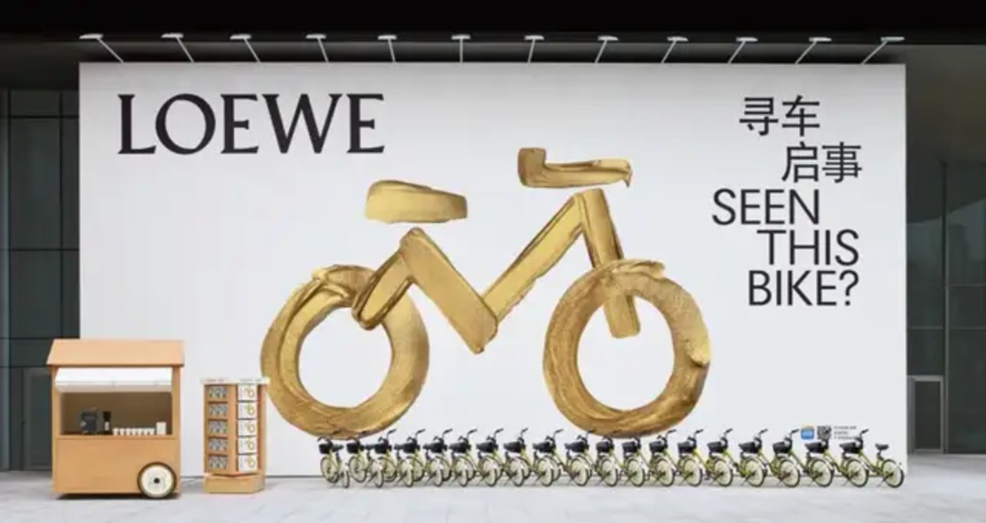 今年年初 Loewe 就和哈啰单车合作推出 「罗意威金色骑旅」 限时体验活动,在上海街头投放限定款金色共享单车,用户累计骑行 3 公里即可获得限定勋章,领取限定画报、咖啡等赠品。这次跨界合作掀起了上海市民的骑行热潮,预约骑行名额几乎 「秒抢光」,短短数天内小红书平台话题浏览量就接近 300 万。