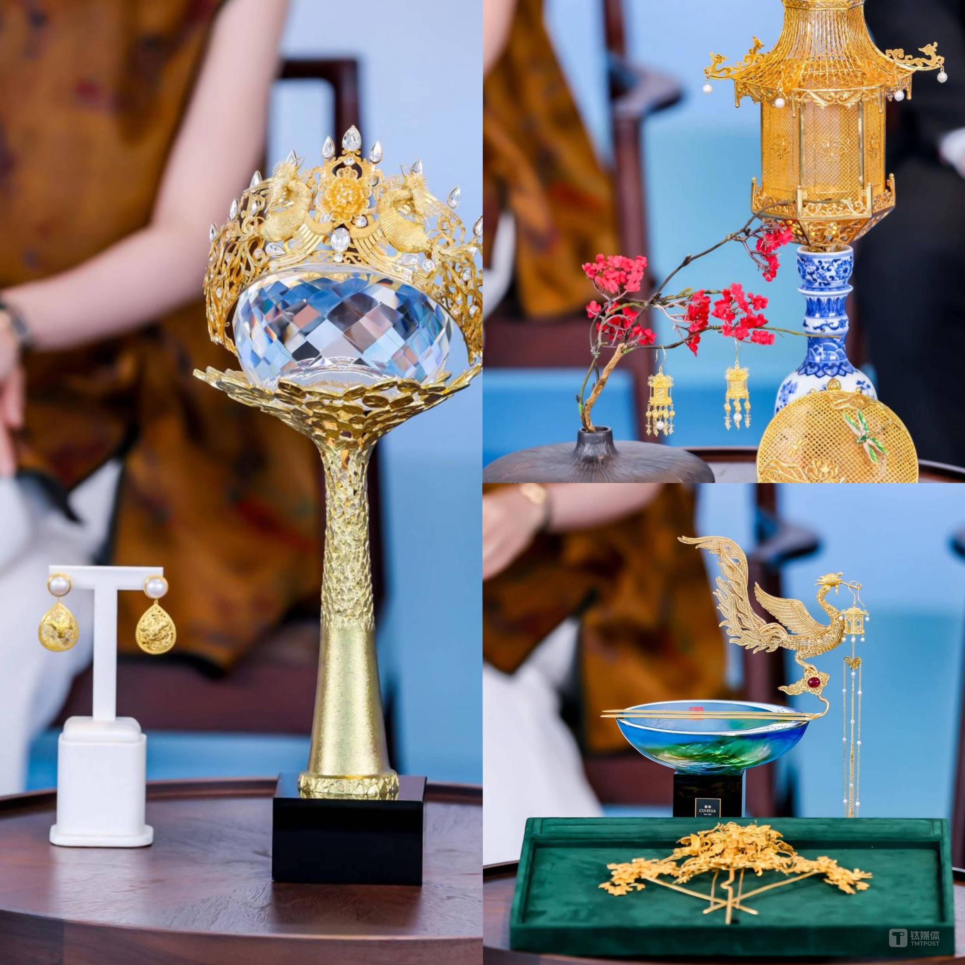 金秋深圳,「金色引擎」 已全部就绪,一触即发。罗湖区委常委、区委 (政府) 办主任赖建华,深圳市萃华珠宝首饰有限公司首席设计师、设计总监郭夷锬,深圳珠宝博物馆馆长王振,周大生珠宝股份有限公司董事副总裁郭晋,以及深圳市黄金珠宝文化研究会会长曹阳齐聚深圳含 「金」 量最高的水贝产业园区,进行了一场别开生面的政企对话,此次对话主要是围绕黄金的发展、研发设计、科技创新等多个角度进行了探讨,并在现场展示了 3 件精美绝伦的黄金宝物 (《凤凰于飞》、《螭龙宫灯》、《天作之合》),透视了中国黄金珠宝产业发展的新未来、新机遇。