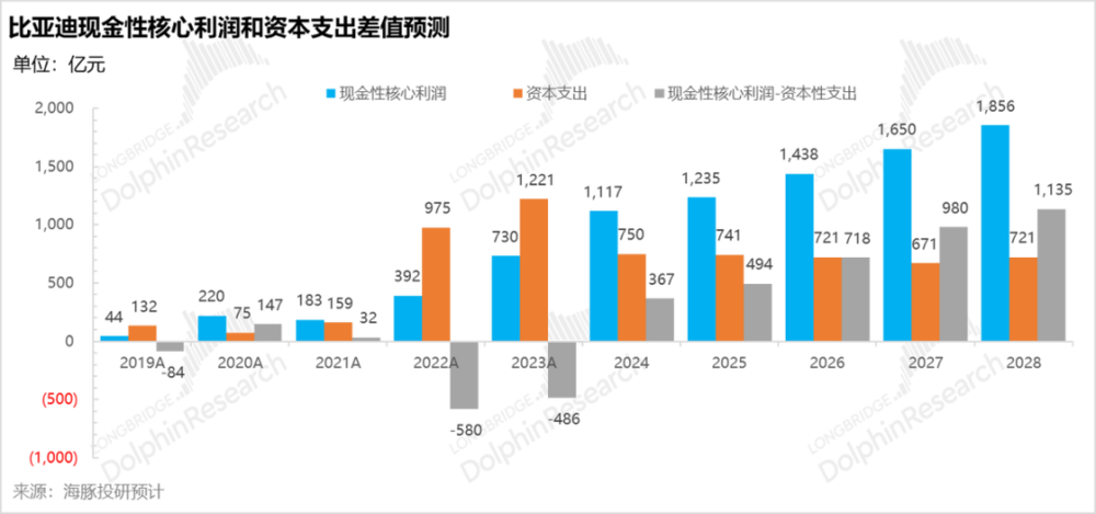 而海豚君基于当前业绩演进的推断显示,比亚迪真实现金性利润开始释放的拐点已到来,2024 年下半年随着资本开支的放缓,真实现金性利润开始转正释放。而海豚君之前在 《比亚迪:终局之战!》 中给出了当真实性利润开始释放时,比亚迪才会有真实的留存收益来做持续的股东回报。