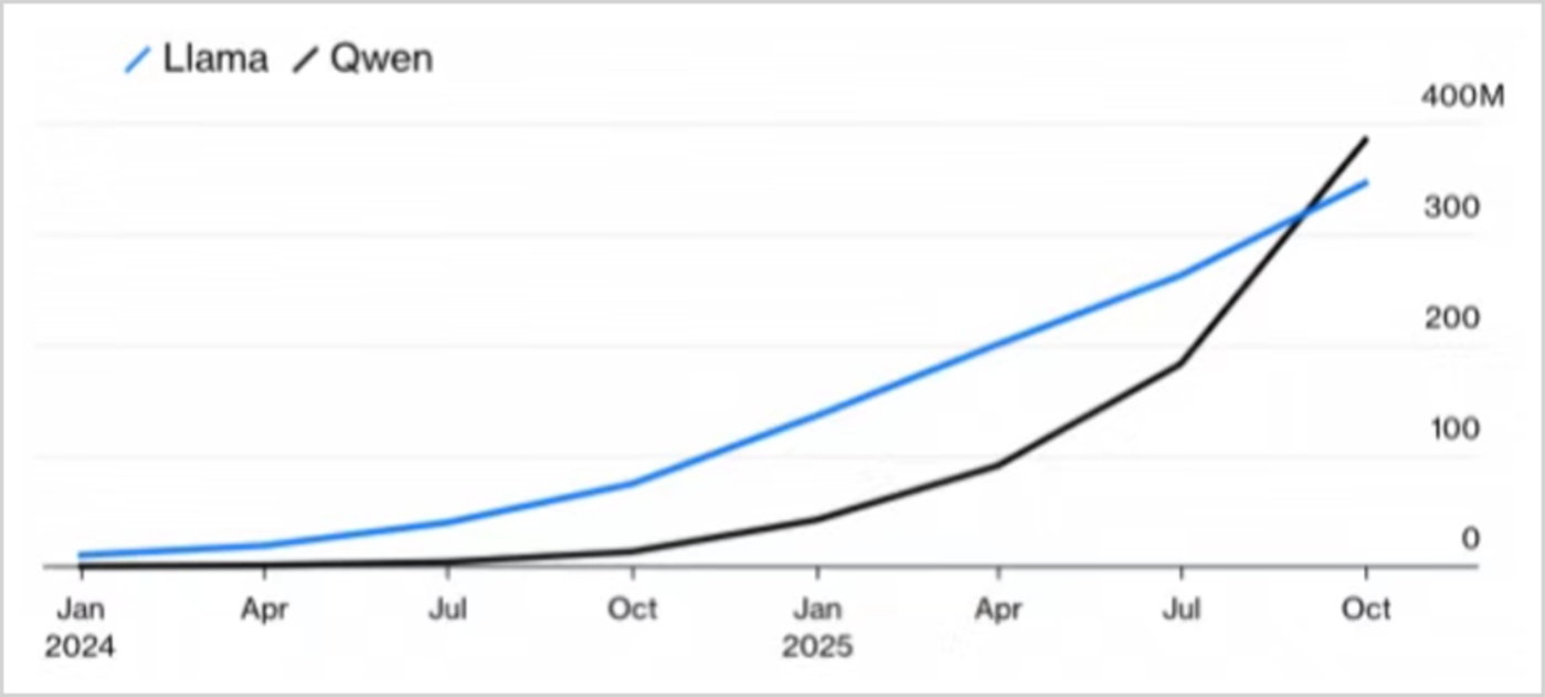 ▲Qwen VS Llama 下载量走势图,来源:ATOM