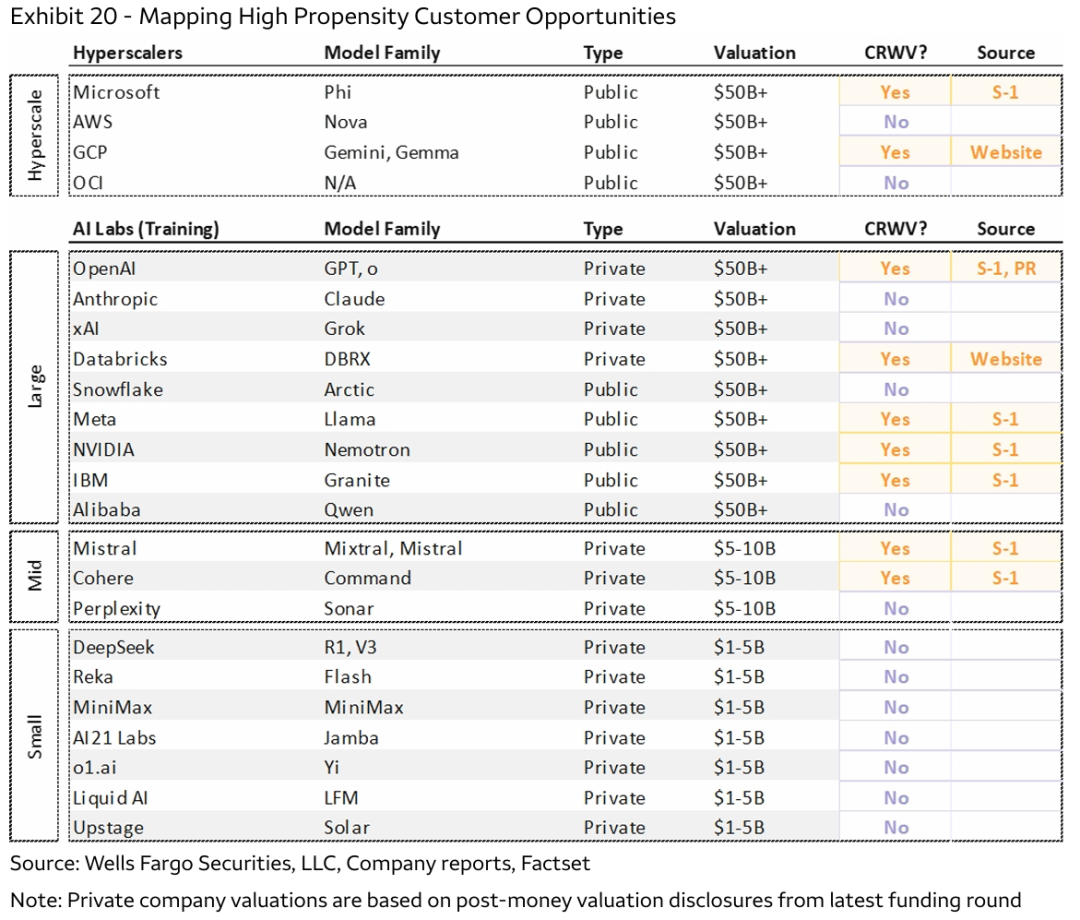 a. 客户结构目前高度集中于少数大公司和少数行业,一旦丢失某大客户会有严重影响 (其最大客户之一微软就明确表示过长期来看更愿意自建数据中心,而非像 CoreWeave 等外部供应商租赁);