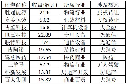 涨停板个股中,股价创出近一年新高的个股有 10 只 (不包括创出历史新高的个股),包括胜通能源、嘉美包装、古鳌科技、世嘉科技、联特科技、皮阿诺、鹭燕医药、三羊马、科新发展、百大集团,具体如下表所示。