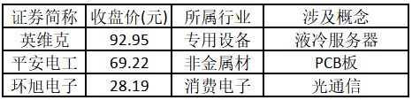 从概念特征来看,今日涨停板个股中,光通信、液冷服务器、大消费概念的个股最多。