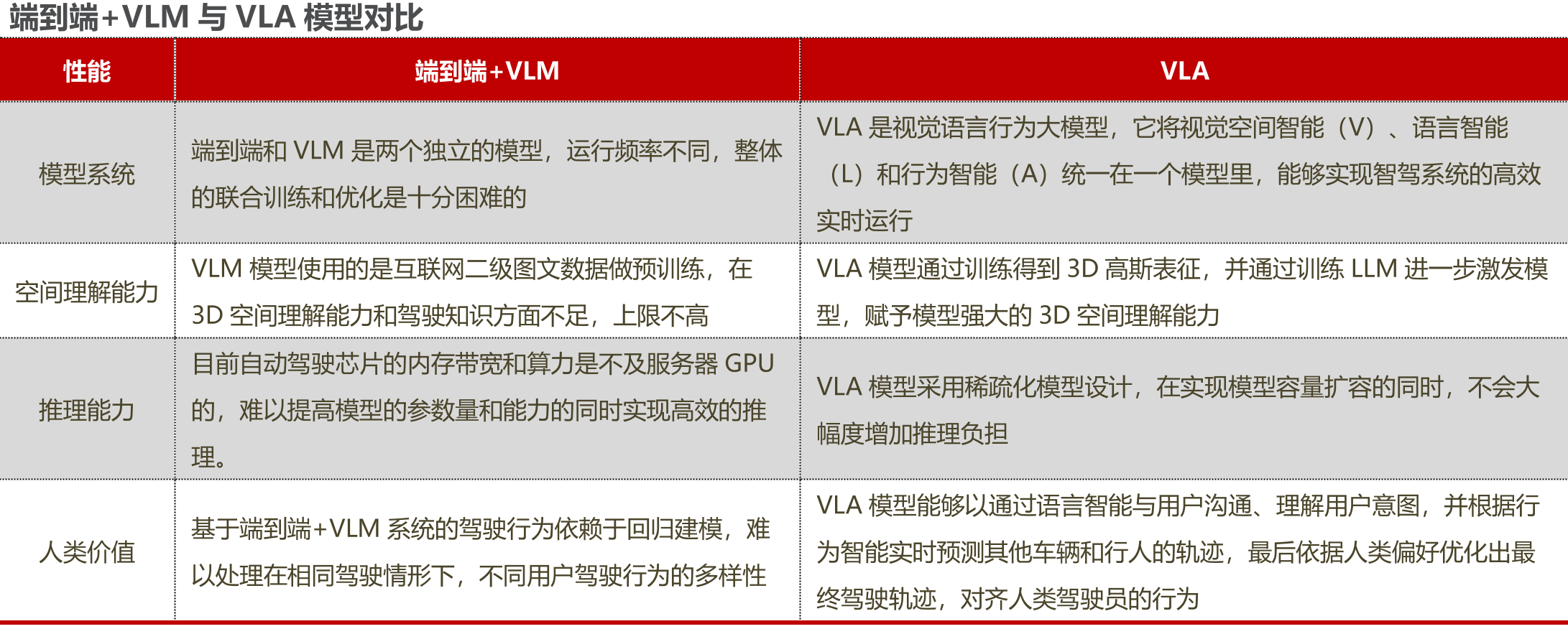 与此同时,VLA 正在成为重要的一环。VLA 模型拥有更高的场景推理能力与泛化能力,对于智能辅助驾驶技术的演进意义重大。从长远来看,在从 L2 级辅助驾驶向 L4 级自动驾驶的技术跃迁过程中,VLA 有望成为关键跳板。