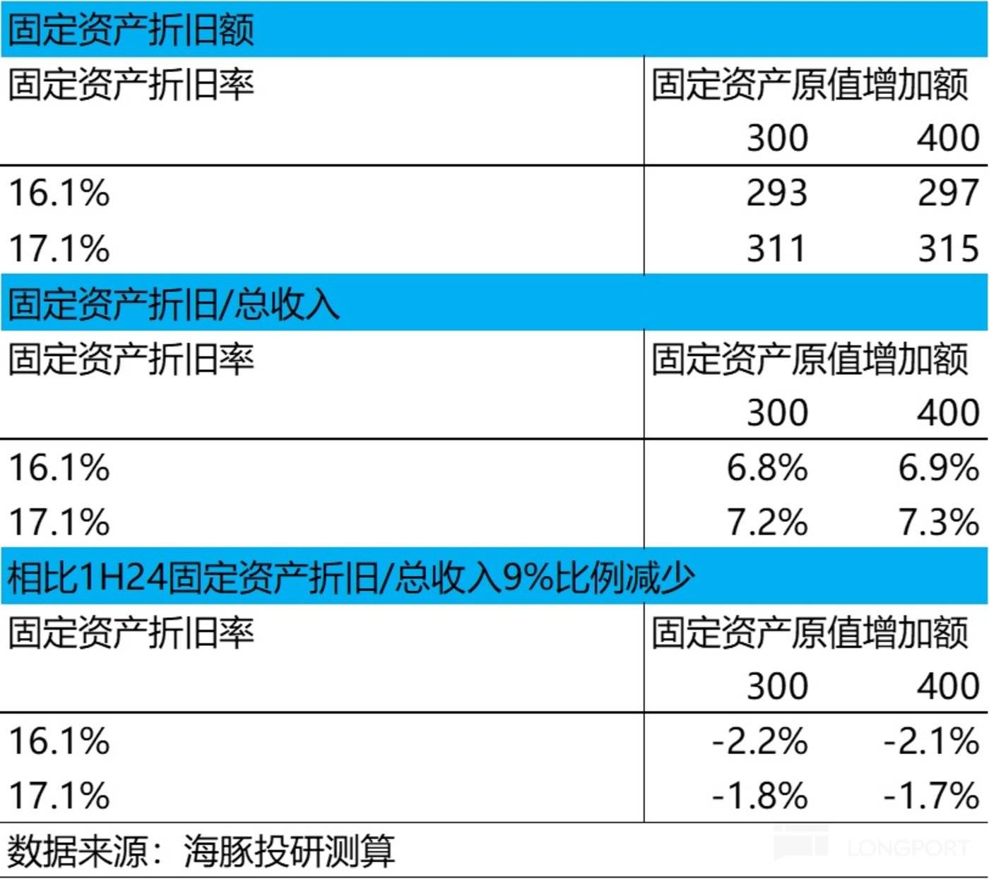 我们测试了基于这三种假设对于收入端 (也就是利润端) 的影响,由于下半年固定资产资本开支放缓,以及规模效应有所释放和单价端提升带来的总收入提升,预计固定资产折旧额相比总收入的比例会环比 2024 年上半年减少 1.7-2.2 个百分点,也就是说,下半年固定资产折旧因素,相比 2024 年上半年还能够帮助毛利率修复两个百分点上下。