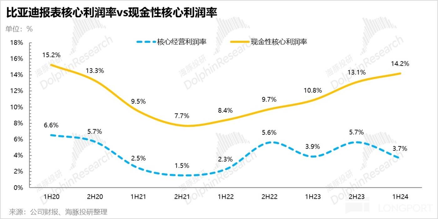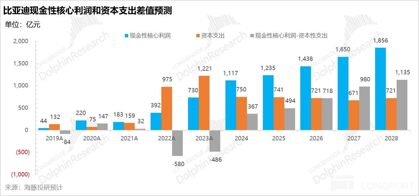 而海豚君基于当前业绩演进的推断显示,比亚迪真实现金性利润开始释放的拐点已到来,2024 年下半年随着资本开支的放缓,真实现金性利润开始转正释放。而海豚君之前在 《比亚迪:终局之战!》 中给出了当真实性利润开始释放时,比亚迪才会有真实的留存收益来做持续的股东回报。