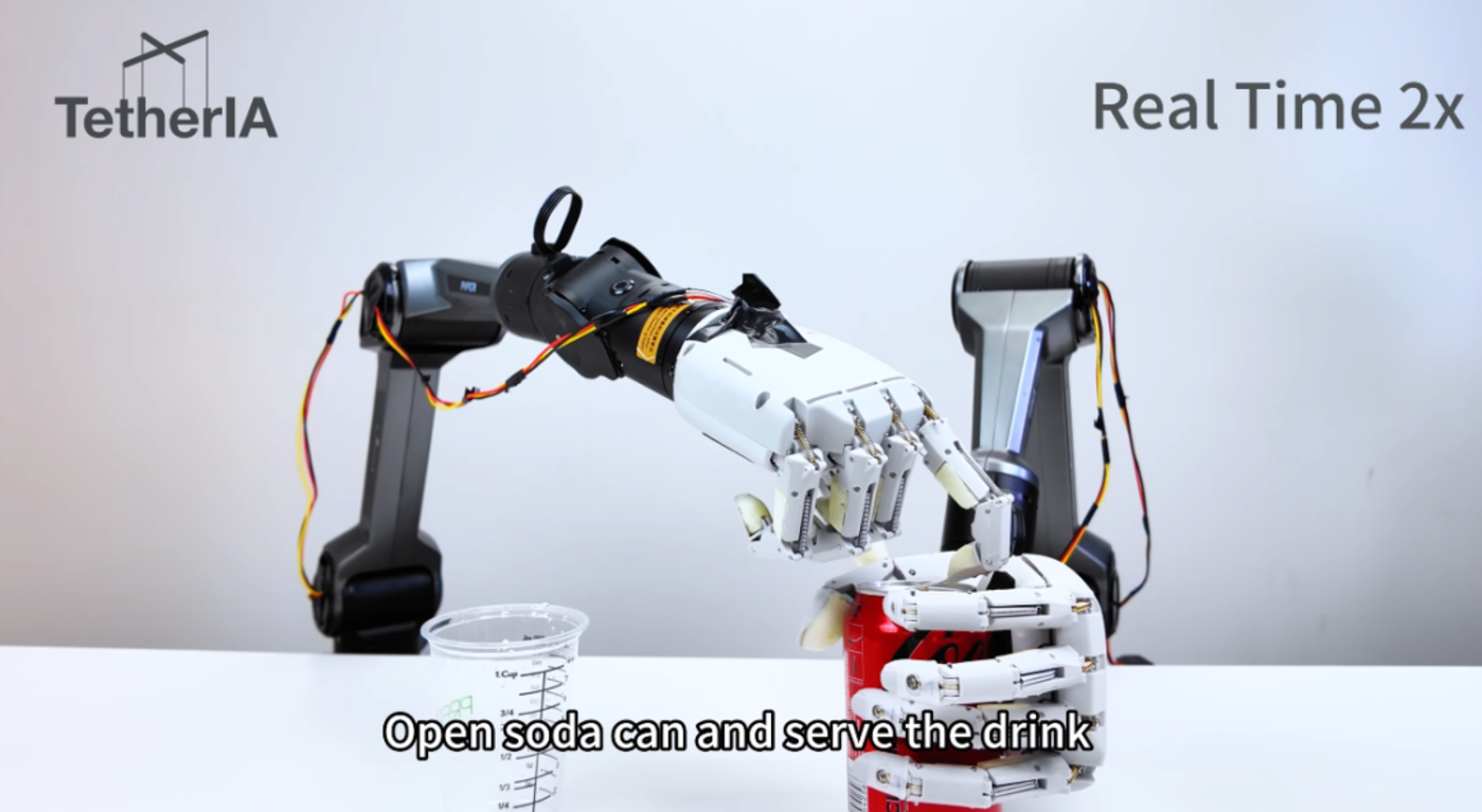 陶一伟:没错,这个是一个非常好的问题。首先开可乐本身,看似只要一双手,再加上一个指甲就可以实现,但是真正把它放到一个双臂机器人系统上,还是非常有挑战的工作,而我们也只是浅浅 Demo 了一下,未来还有非常多的工作,怎样能让整个事情变得完全自动地实现起来,并且成功率非常高地去实现,还是一个很长的路要走。