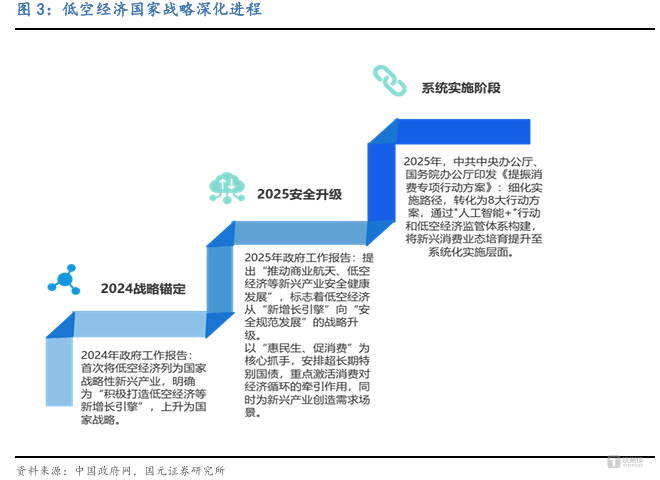 低空经济市场规模强势增长背后,其动力无疑来自于清晰且坚定的政策导向。从中央层面看,低空经济在 2025 年继续被写入政府工作报告,“ 十五五” 规划建议更是明确提出“ 加快新能源、新材料、航空航天、低空经济等战略性新兴产业集群发展”,将其提升至与国家命脉紧密相连的战略高度,彻底明确了其作为新增长引擎的地位。