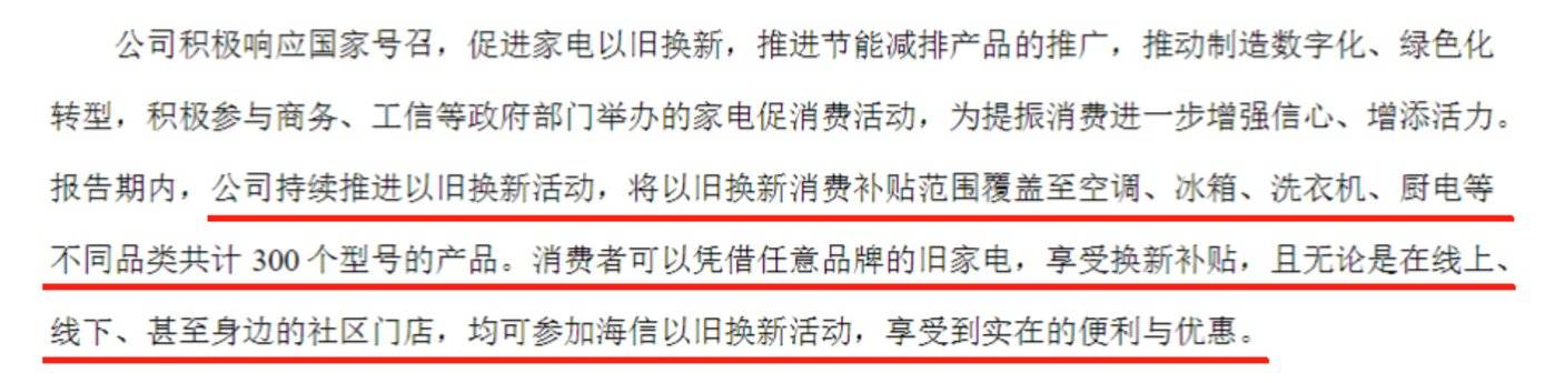 在包括美的、格力、海信在内的家电企业也均在刚刚发布的半年报中,重点提及了以旧换新政策对下半年销售的拉动作用。