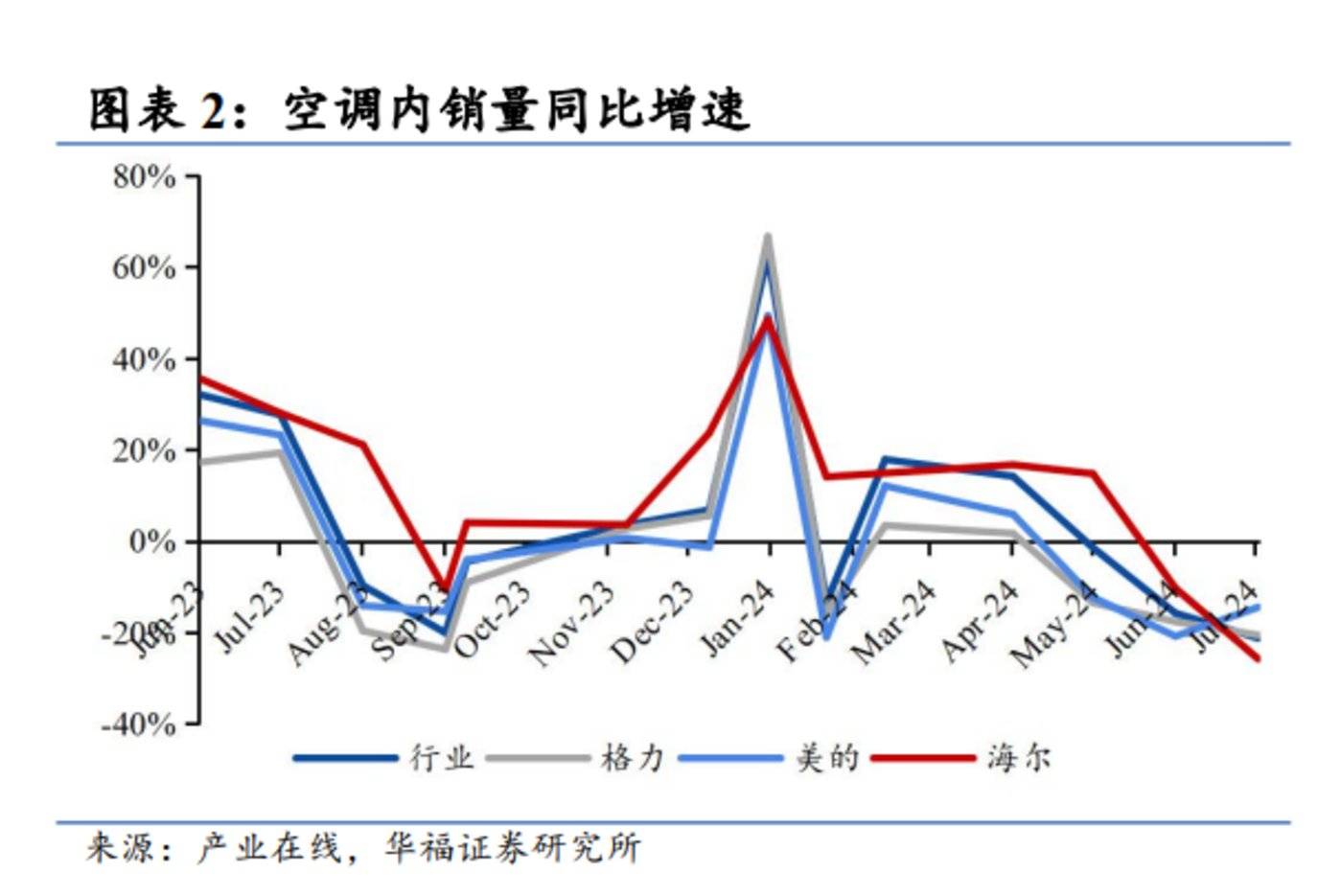 特别是进入 7 月以来,白电的内销持续下滑。根据产业在线,7 月空调销售同比下滑 2.6%。其中内销出货同比下滑 21.3%。