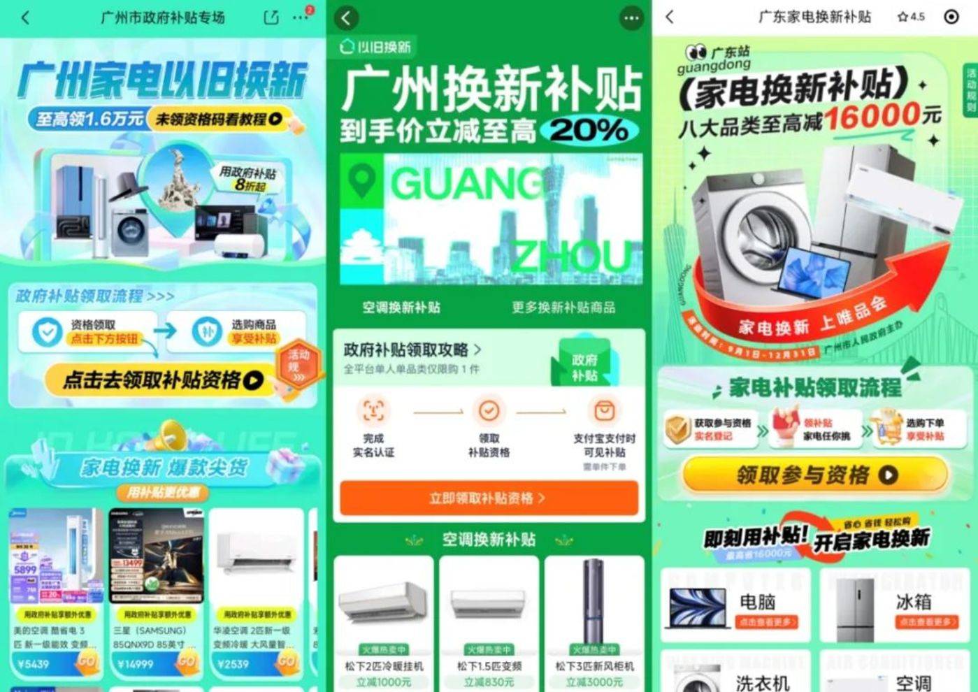 在京东、淘宝、唯品会搜索 「广州以旧换新」,就能进入各个平台的活动页面。只要点击领取补贴资格,就可以直接搜索符合要求的商品选购,即可获取补贴。