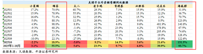 尽管美团受外卖大战影响,市场份额出现了大幅回撤,但部分商家 (如海底捞) 在美团外卖同比增速却接近 100%。众所周知火锅是高度依赖门店就餐的,2025 年线上的高速增长,这就是在告诉我们:
