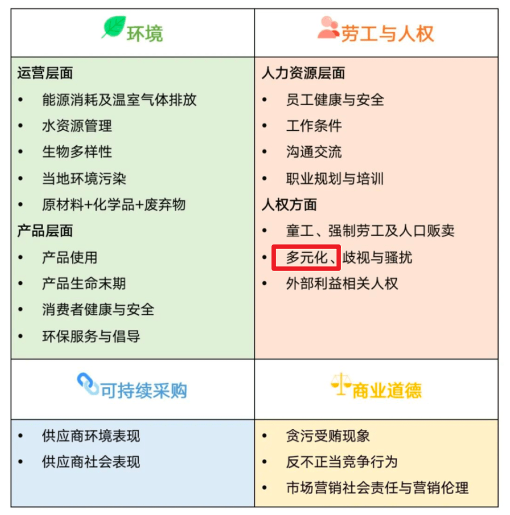 其中,有些其他的评价体系里,就会包含 「多元化」 相关条件。