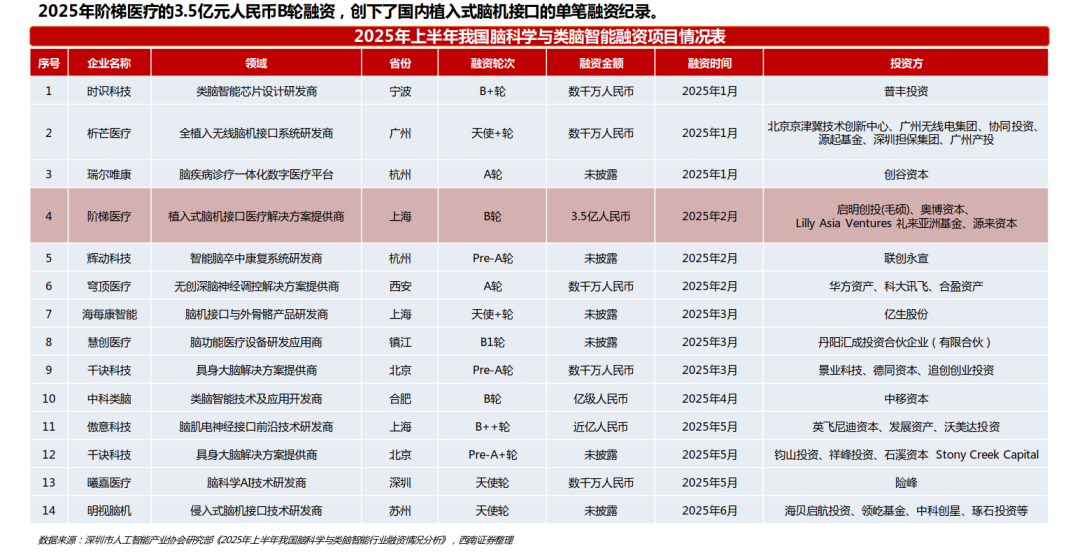 半侵入式方面,美国的 Precision Neuroscience 和 Synchron 是这一路径的代表。前者已获批用于短期商业植入,后者则通过血管介入方式,获得了临床试验许可。