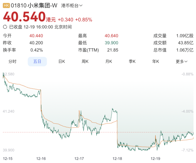 不过,从资本市场的角度来看,小米在 12 月 17 日的股价并没有因为其对外释放的研发成果而出现明显的回升,甚至在此后两天还出现了一定的下行—— 从资本市场的反馈来看,至少到目前为止,外界对于小米加码硬核科技、加码研发投入的叙事逻辑还并不买单。