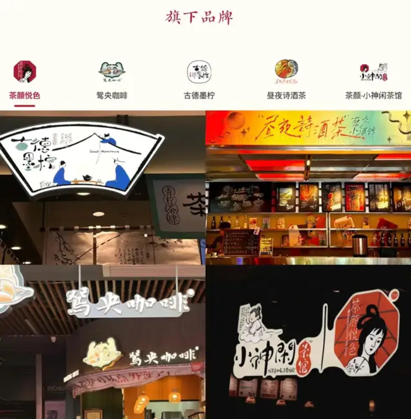 从茶颜悦色动作来看,其正以平台型思路,来打造品牌矩阵。2020 年,茶颜悦色推出 「茶叶子铺」「茶颜游园会」 等线下零售店型,产品涵盖茶叶、茶粉、零食、文具、生活用品等多个品类;2022 年,茶颜悦色在长沙开出 「小神闲」 的茶馆和鸳央咖啡;2023 年推出新中式柠檬茶品牌古德墨柠;今年,茶颜悦色官宣开出 「昼夜诗酒茶·艺文小酒馆」,主打新式酒与茶……