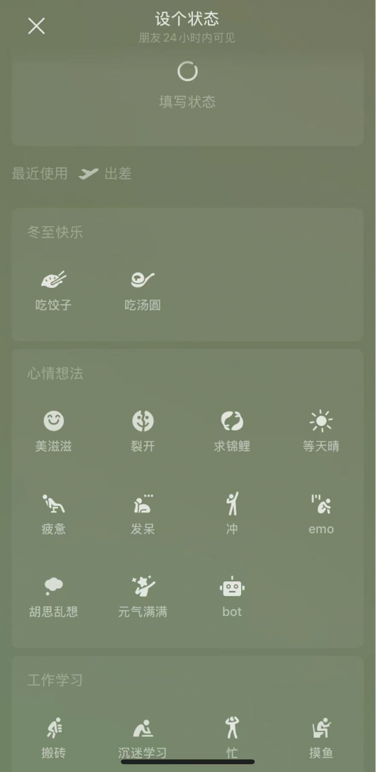 需要提醒的是,由于是节日限定,因此这两个状态只能在今天设定,冬至过后将下线。