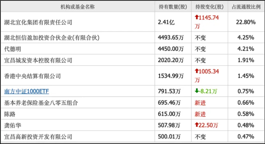 华夏能源网注意到,截至今年第三季度末,代德明持有湖北宜化 (持股 4450 万股,第三大股东,另外通过湖北恒信盈加投资合伙企业持股 4493.65 万股)、方大炭素 (持股 700 万股,第九大股东)、 荣盛石化 (持股 4800 万股,第九大股东)、湖南裕能 (持股 714.92 万股,第九大股东)、华新建材 (持股 770 万股,第十大股东) 等多只股票,这些股权价值不菲。