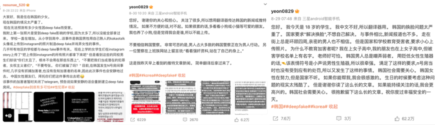 在韩国,犯罪者通过 DeepFake 将普通人的形象替换到色情图片或视频中,然后通过社交媒体上进行传播,对当事人进行羞辱。