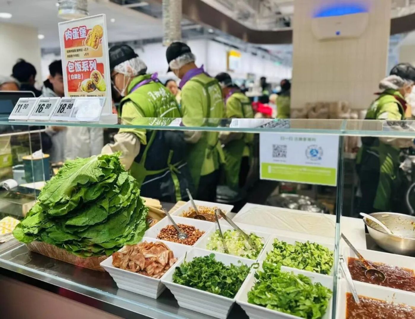 其一:强化线下烟火气和体验, 充分设置现制熟食加工档口,做足 「可买、可逛、可吃和可休憩」 的体验性。