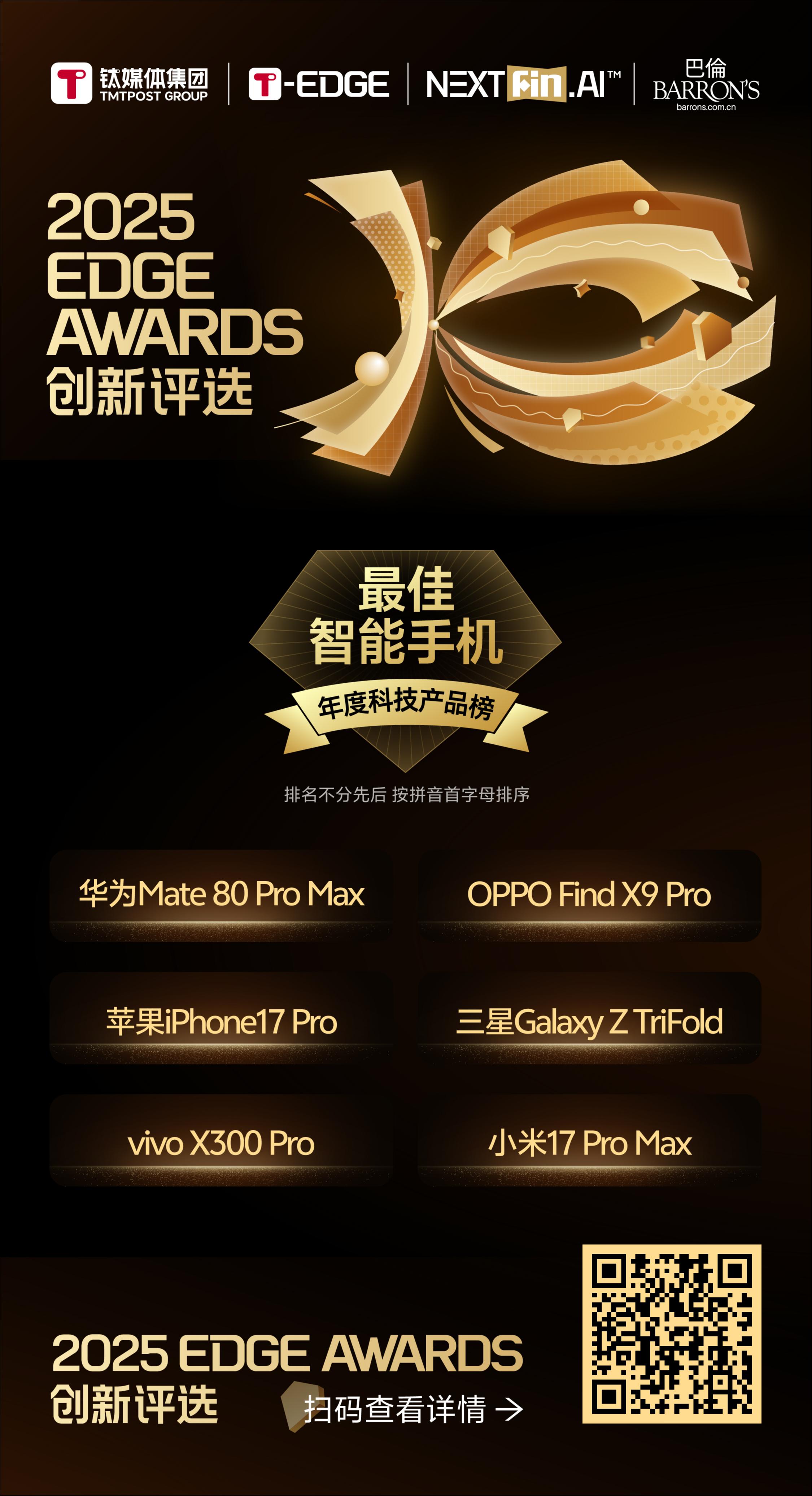 12 月 8 日至 21 日 (北京时间),钛媒体集团携手 NextFin.AI、巴伦中国举办的 2025 T-EDGE 全球对话正式开启。会上,作为全球前沿科技的长期观察者,钛媒体以更开放的国际视野,复盘这一年技术与产业的跃迁,致敬那些重新定义时代边界的科技产品,并在此重磅发布 2025 EDGE AWARDS 年度前沿科技产品榜。