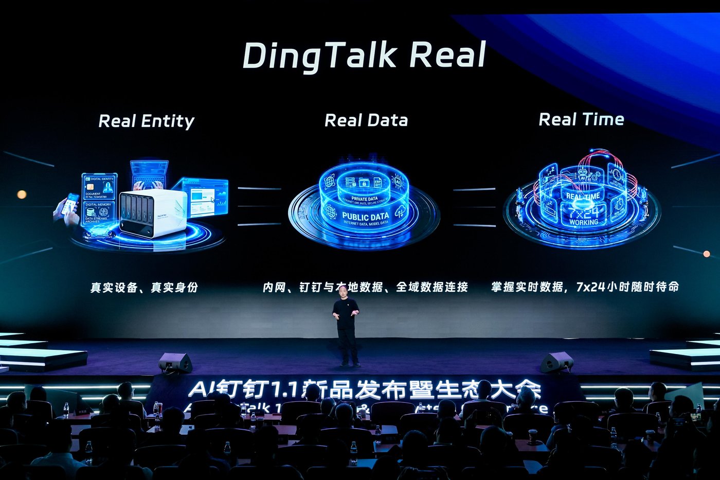 在随后召开的 AI 钉钉 1.1 新品发布会上,无招上来就放了两个大招,宣布推出硬件 Real,和宣布了钉钉的新定位——Agent OS,随后他又不停地发布了 20 多个 AI 产品和功能。