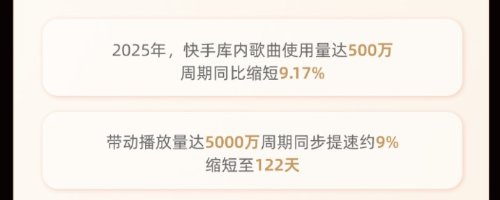 在版权合作领域,快手音乐自 2021 年起持续稳定投入并严格践行版权结算机制,已连续 5 年兑现对行业的承诺。2025 年,平台合作版权方数量同比增长 18%,合作规模的持续扩大。