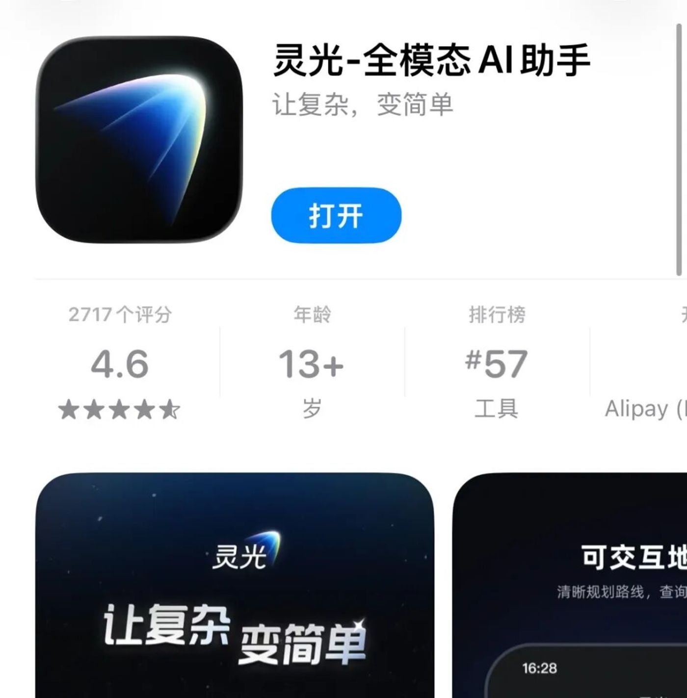 2025 年 11 月 18 日,蚂蚁推出全模态通用 AI 助手 「灵光」,主打 「一句话、30 秒生成应用」 的闪应用功能。据灵光官方数据,APP 上线 6 天下载量突破 200 万,一度冲上 iOS 免费工具榜第一、App Store 总榜第七。