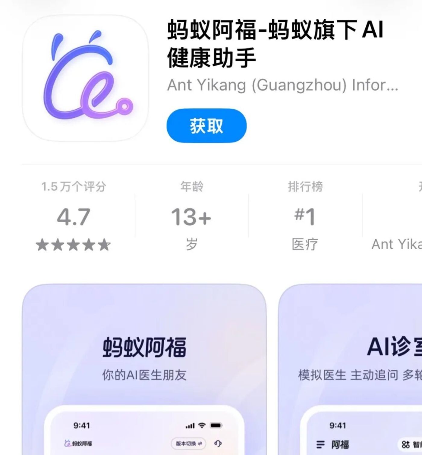 APP STORE 上的蚂蚁阿福 APP,图/APP STORE