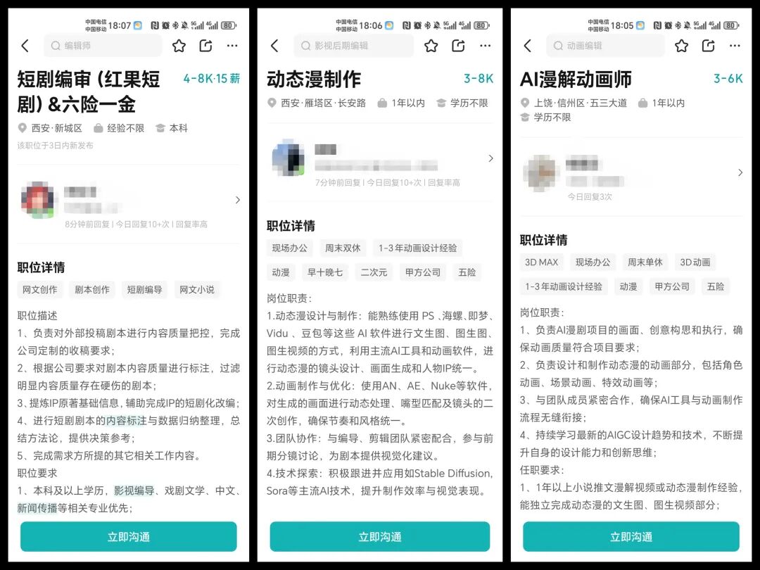 一方面说明行业对于“ 内容创作+AI 技术” 的复合型人才缺口较大,准入门槛低,另一方面也说明企业对该赛道的长期看好,愿意培养更多人才。