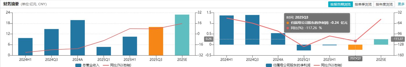 2022-2024 年,公司营收从 26.26 亿元逐年收缩至 19.81 亿元,2024 年同比降幅高达 21.98%;盈利端更是断崖式下滑,归母净利润从 2023 年的 7.56 亿元骤降至 2024 年的 0.54 亿元。2025 年困境仍未缓解,前三季度虽实现 15.93 亿元营收,同比增长 7.71%,却陷入 「增收不增利」 的尴尬,归母净亏损达 0.24 亿元。