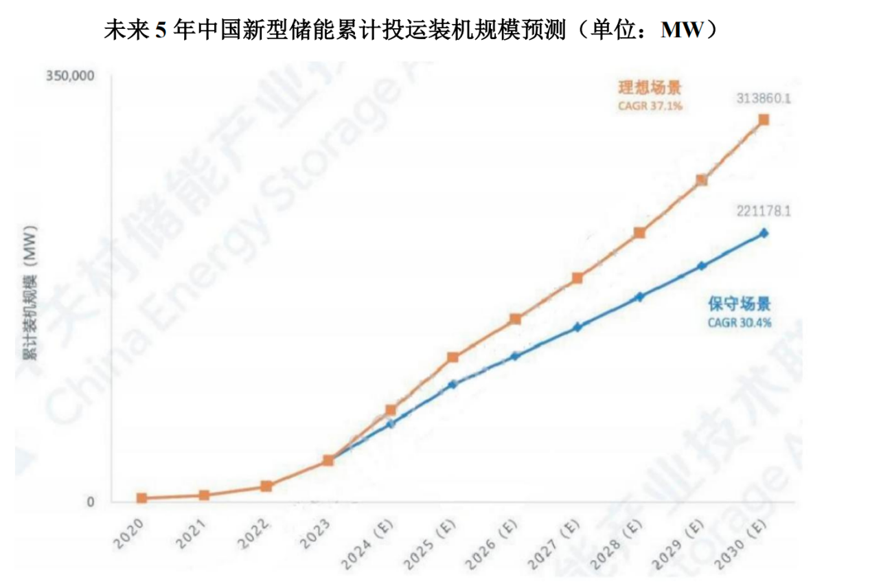 储能产业同样迎来黄金爆发期,在政策东风与市场需求共振下,中国新型储能累计装机规模在 2025 年上半年首破 100GW,较“ 十三五” 末期激增 32 倍。根据中国能源研究会储能专委会/中关村储能产业技术联盟 (CNESA) 的预测,在保守场景下,预计 2028 年我国新型储能累计规模将达到 168.7GW,2024 年—2028 年复合年均增长率为 37.4%;在理想场景下,累计装机规模和复合年均增长率将分别达到 220.9 吉瓦和 45.0%。